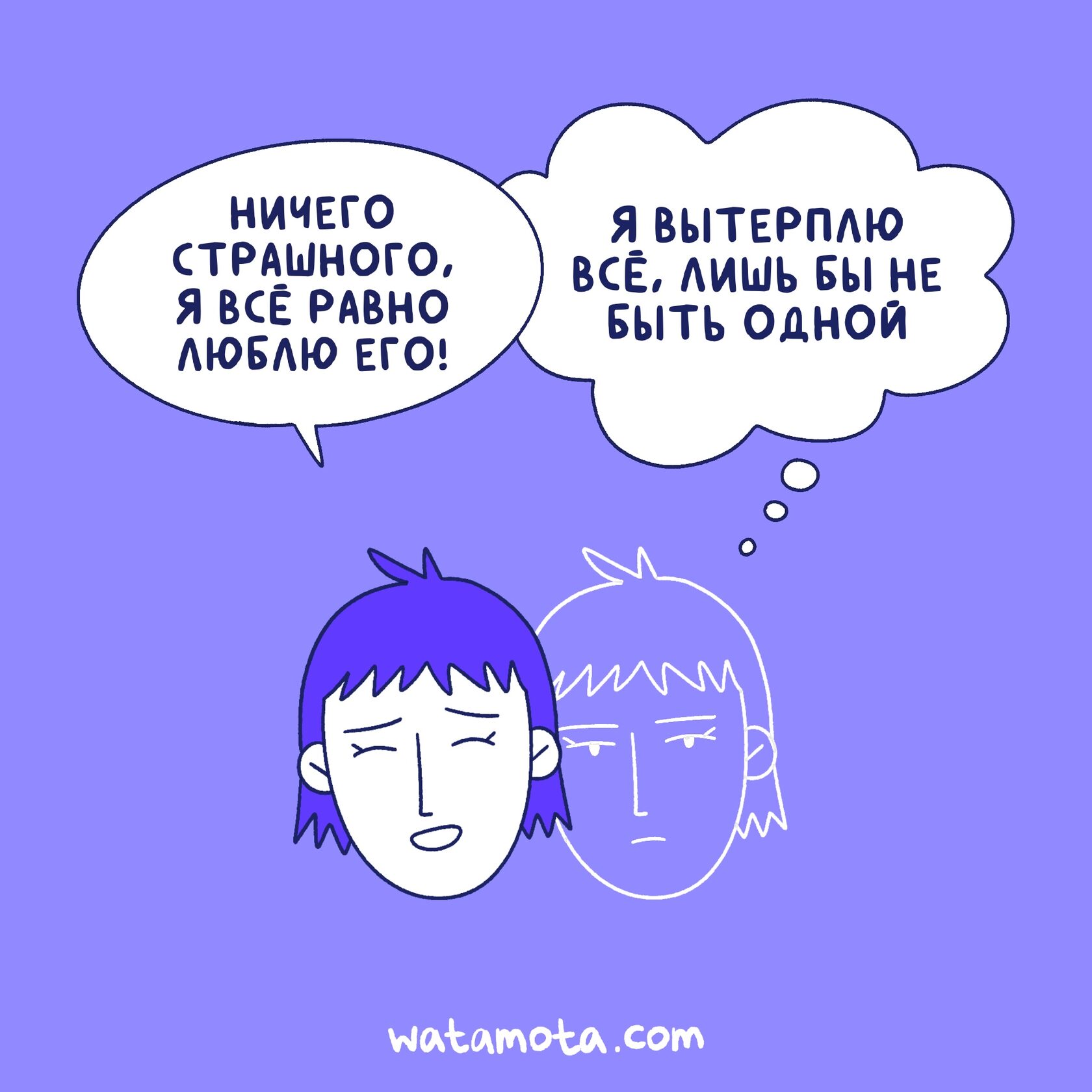 Многие боятся одиночества сильнее, чем токсичных отношений. Кажется, что даже плохая связь лучше, чем её отсутствие. Одиночество воспринимается как поражение, и человек выбирает всё что угодно, кроме этого.