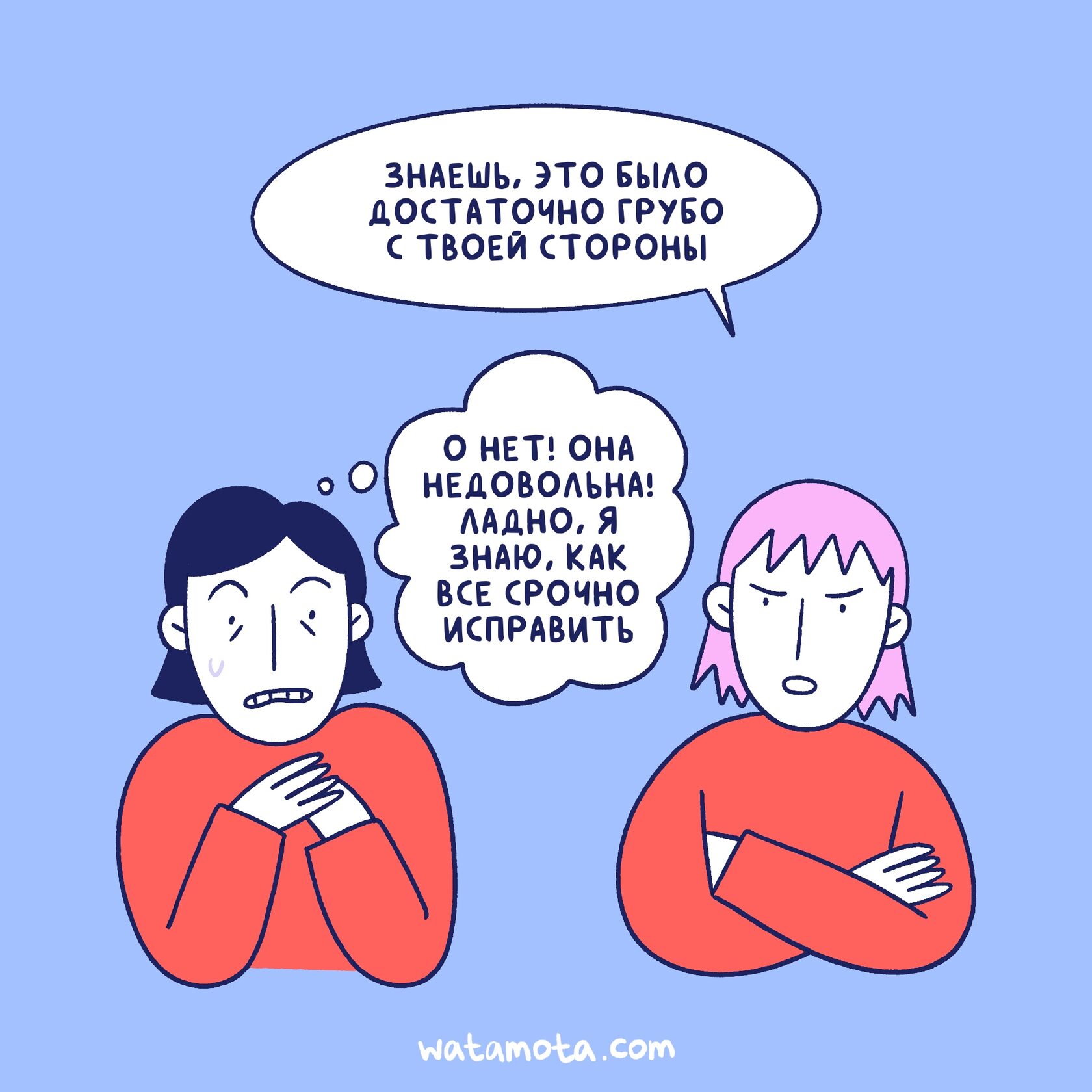 Пока эти стратегии управляют поведением, спокойно относиться к чужому недовольству невозможно, потому что тело и психика уверены – происходит что-то опасное.