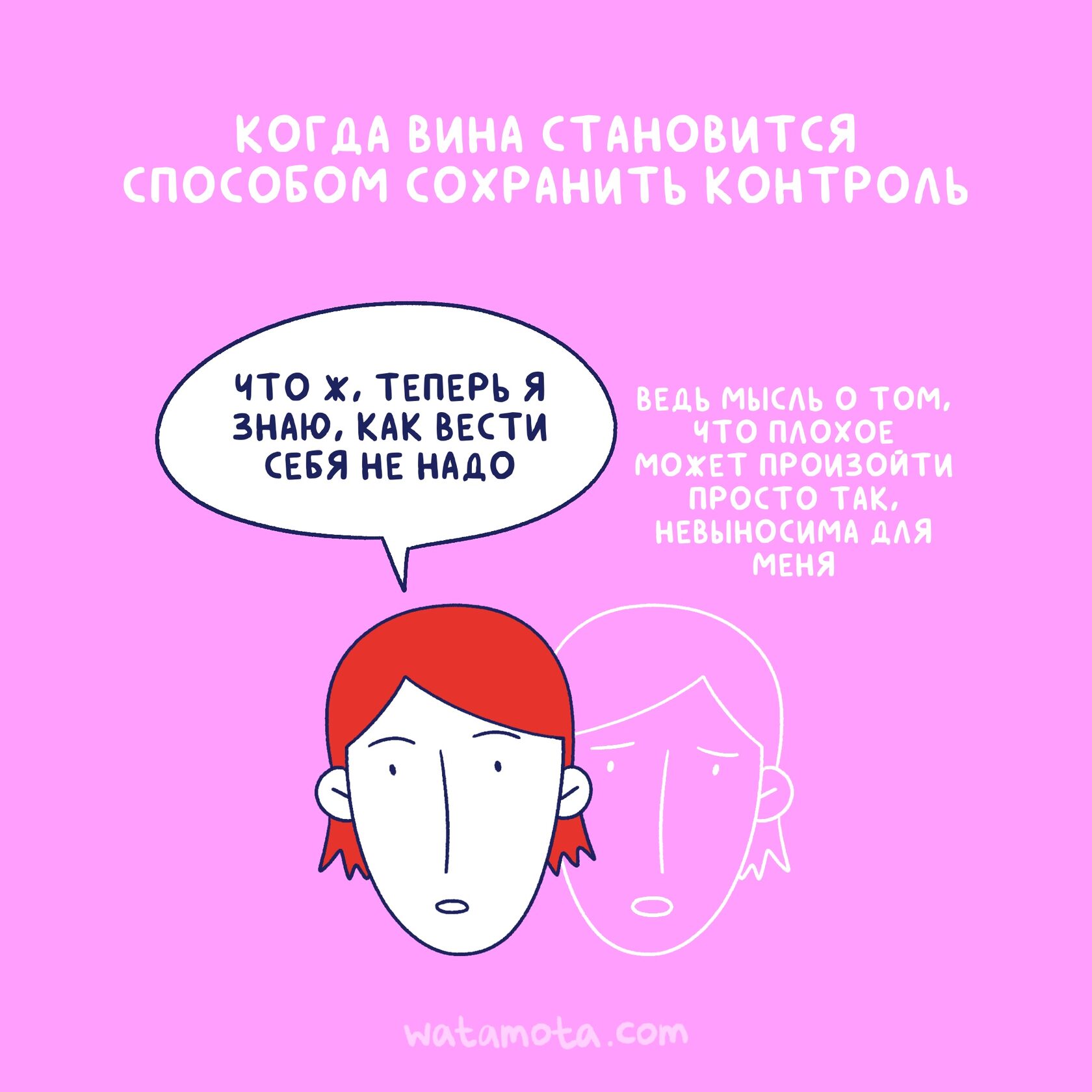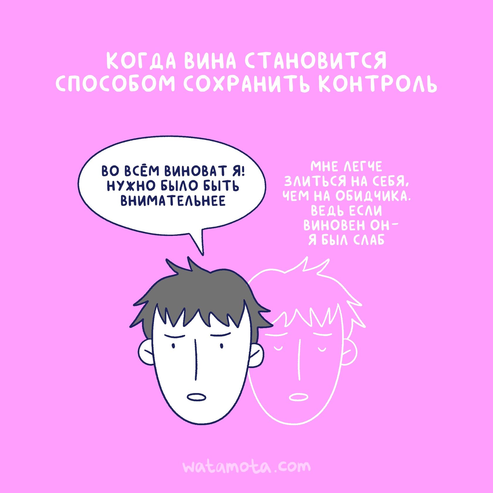 И это кажется логичным. Но есть проблема: вина даёт иллюзию, а не реальную защиту. Просто к уже имеющейся боли прибавляется стыд и самокритика.
