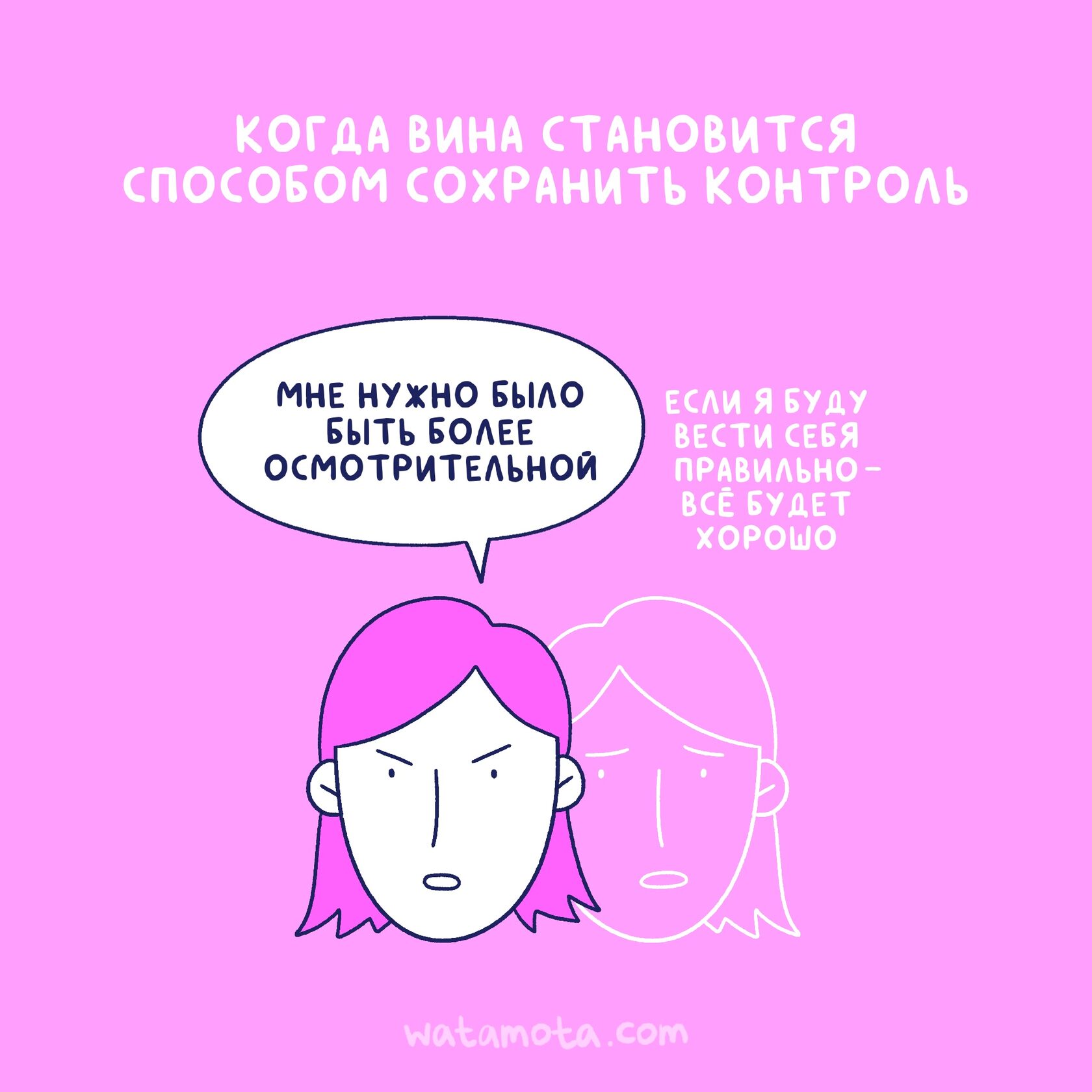 Когда вы говорите себе «сама виновата», вы как будто заключаете с собой негласную сделку: «Если я сейчас признаю, что всё было по моей вине, значит, могу не допустить этого в будущем. Я защищу себя».