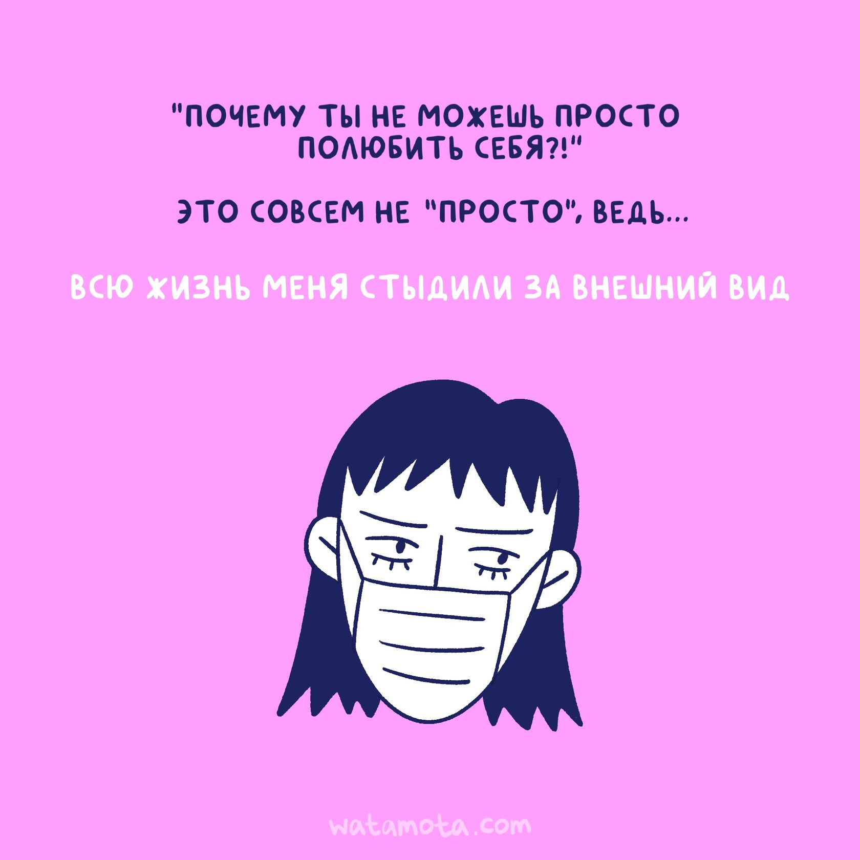 Кажется, что если пока не любишь себя — то и путь в общество тебе закрыт.